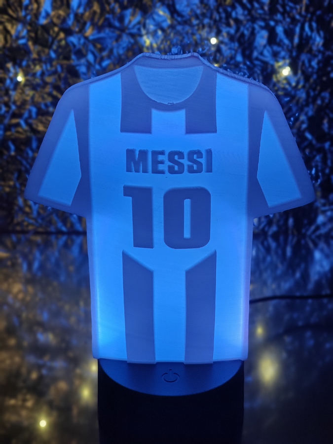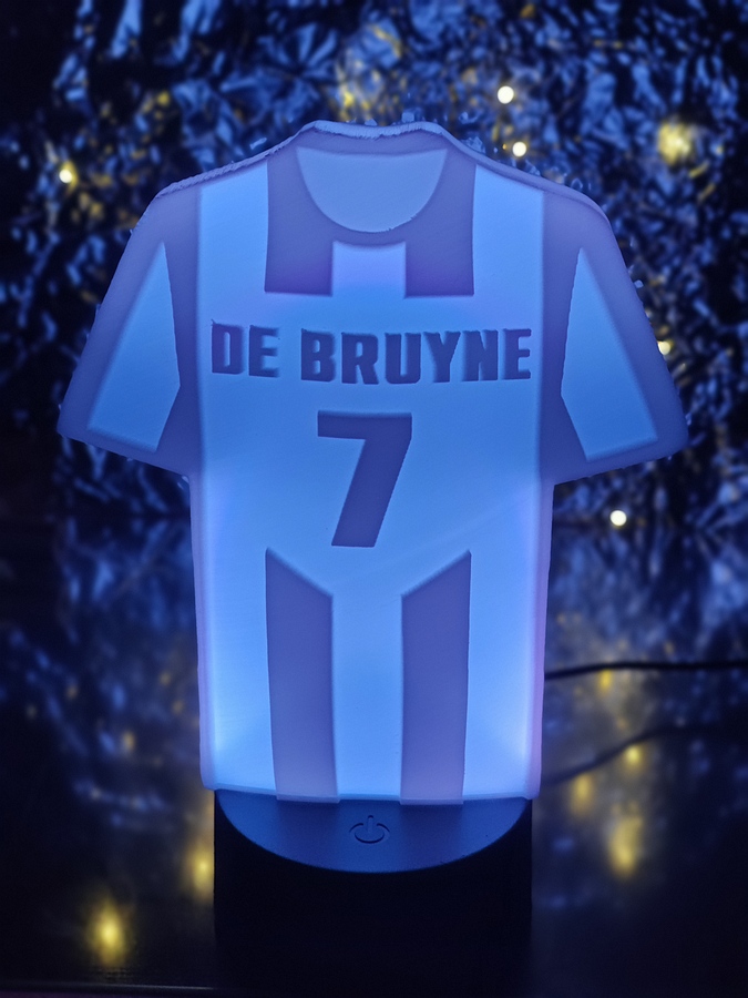 Het strakke ontwerp en de levendige kleuren brengen de voetbaldromen van jouw kleine fan nog meer tot leven. Dit lampje is een uniek persoonlijk cadeau voor jouw mini voetballertje. Zo kan je aan één kan van het t-shirt de naam van haar/zijn held zetten met de rugnummer en aan de andere kant haar/zijn eigen naam met rugnummer.